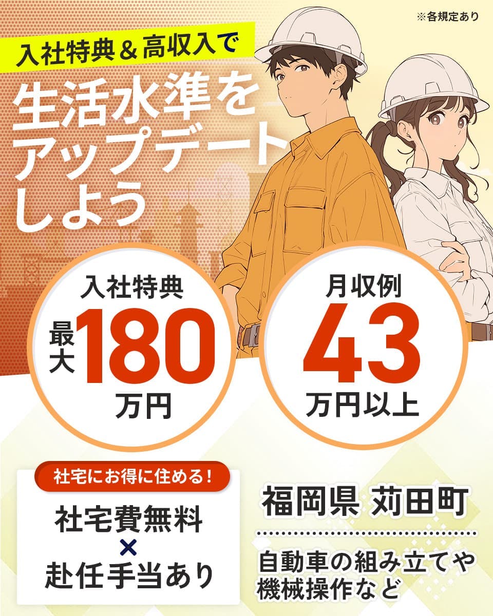 PR PR 691468t_main X Facebook はてブ LINE コピー 2025.10.02 おすすめ期間工3選 ▶ トヨタ自動車【入社祝い金100万円&日給350円UP↗】 ▶ 日産自動車九州【年収584.8万円&入社特典100万円】 ▶ 豊田自動織機【日給10,500円&入社祝い金50万円↗60万円Upで稼げる!】 おすすめ期間工3選 ▶ トヨタ自動車【入社祝い金100万円&日給350円UP↗】 ▶ 日産自動車九州【年収584.8万円&入社特典100万円】 ▶ 豊田自動織機【日給10,500円&入社祝い金50万円↗60万円Upで稼げる!】