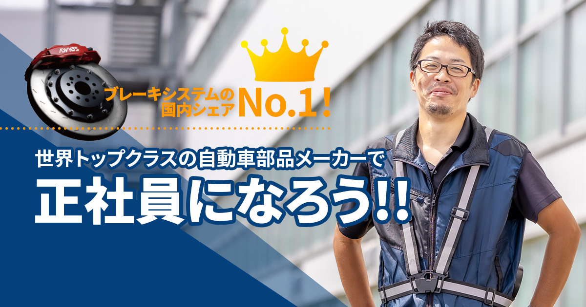 期間従業員募集 | 株式会社アドヴィックス登用数、3年間でなんと200名! 登用試験は入社半年後からチャレンジ可能。しかも充実のサポートで、受験初回での合格率は8割以上!! 最短6ヶ月であなたも世界的メーカーの正社員になろう!