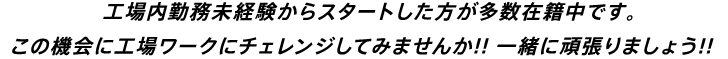3工場いずれかの勤務になります。(作業所選択可能)