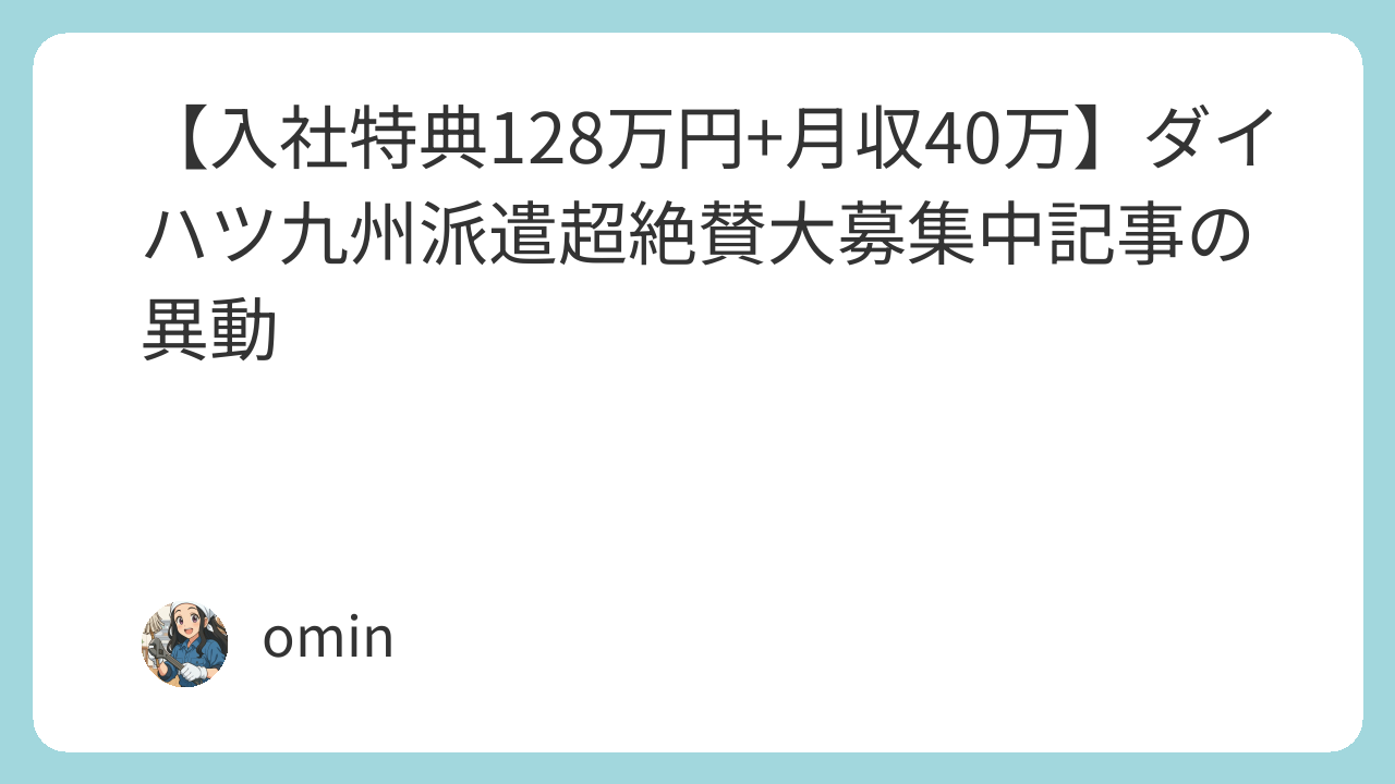 【入社特典128万円+月収40万】ダイハツ九州派遣超絶賛大募集中記事の異動