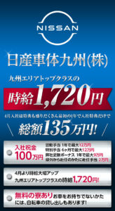 日産車体九州が4月から時給1720円と大幅アップで派遣を募集中です。