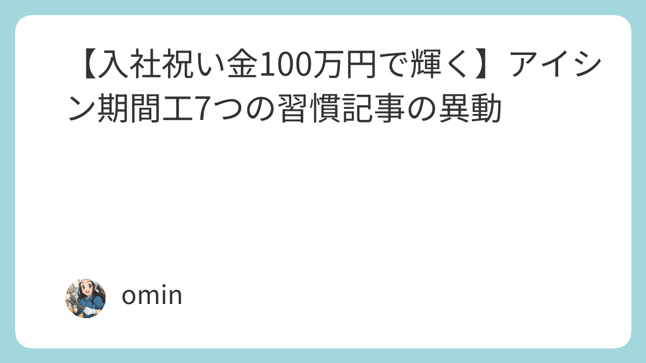【入社祝い金100万円で輝く】アイシン期間工7つの習慣記事の異動