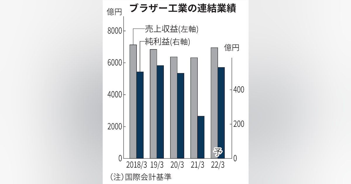 決算:ブラザー純利益2倍、在宅用プリンター好調 22年3月期 - 日本経済新聞ブラザー工業は8日、2022年3月期の連結純利益(国際会計基準)が前期比2.2倍の530億円になりそうだと発表した。従来予想を70億円上回る。上方修正は2回目だ。新型コロナウイルスの流行を背景にテレワークが定着。9月までの在宅勤務用の小型複...