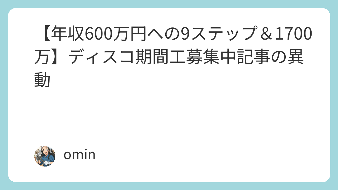 【年収600万円への9ステップ&1700万】ディスコ期間工募集中記事の異動