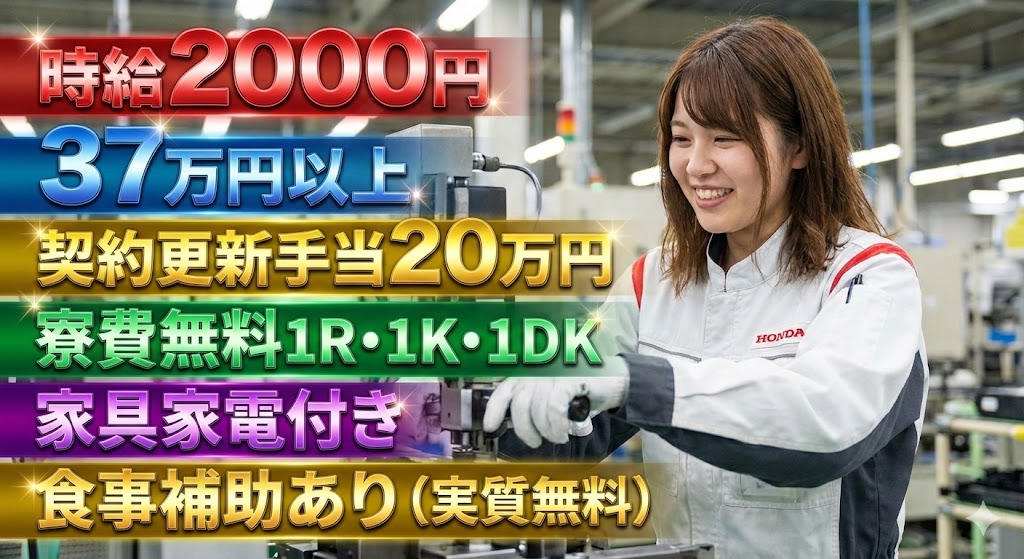- 【時給2000円×寮費無料】Honda鈴鹿製作所で高時給でタイパ最強の派遣求人爆誕!!!!!!