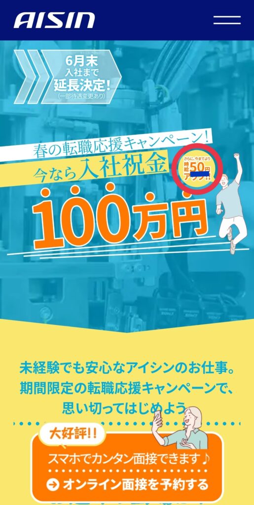 6月末まで延長決定!今なら入社祝い金100万円!!アイシン期間工超大絶賛募集中!