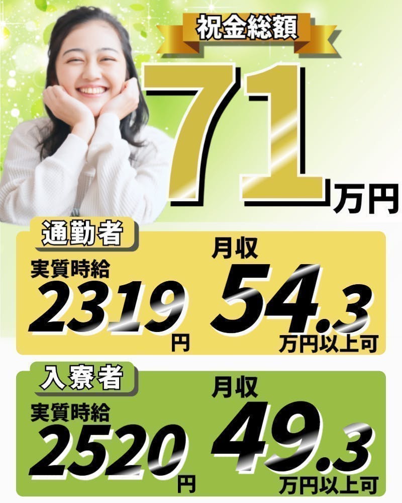 • 💴 入寮者:時給2000円〜2500円(月収50.3万円以上)