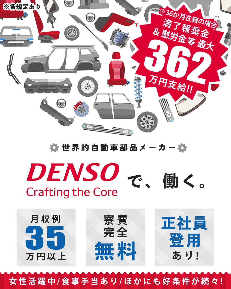 - デンソー直接雇用で長期在籍可能! 女性や工場未経験者も多数活躍中!