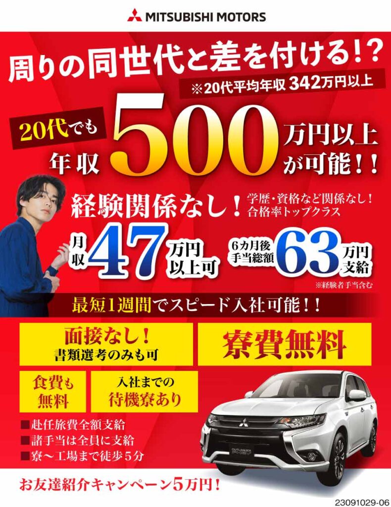 - 【寮費光熱費食事無料】三菱岡崎で特典325万円!10月最後のチャンス!?