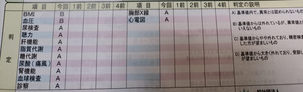 今週の残業は12時間で今月は現時点で残業30時間ほどちなみに私の健康診断結果はだいたいA判定