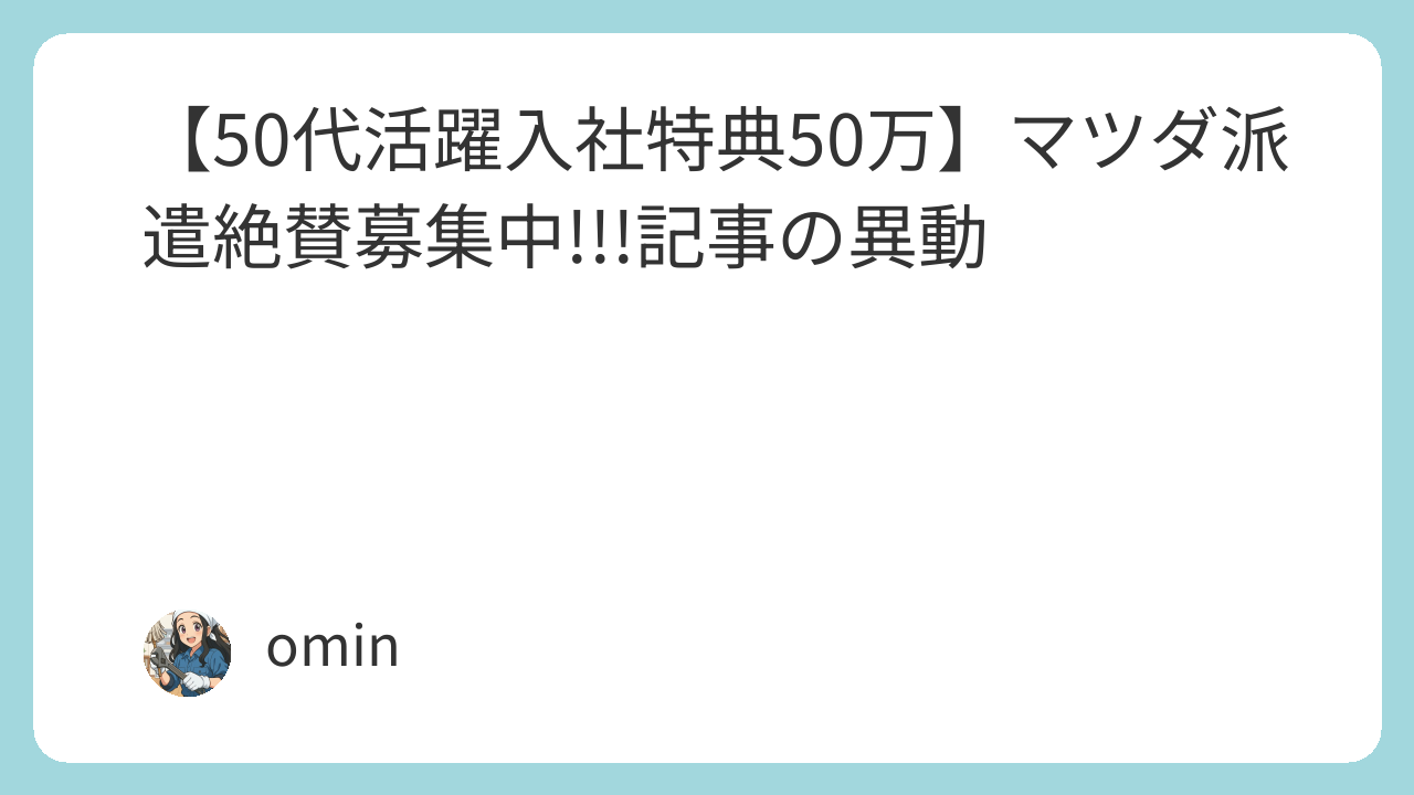 【50代活躍入社特典50万】マツダ派遣絶賛募集中!!!記事の異動