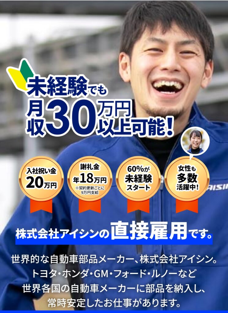 アイシン期間工は未経験でも月収30万円以上可能で絶賛募集中!