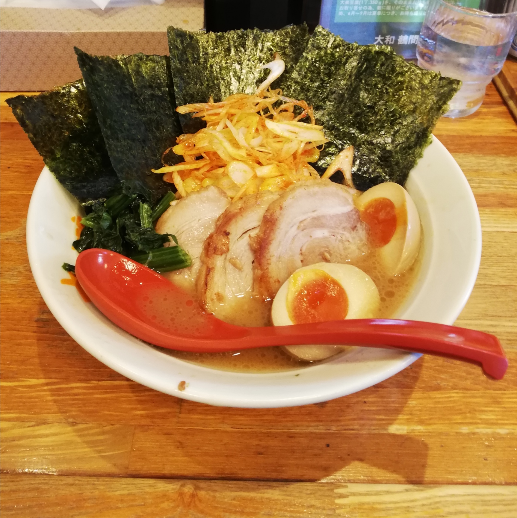 20分ぐらい待った後、店内に入り券売機でネギチャーシューと味玉と海苔を購入しカウンター席に座り5分くらいで着丼(食べログとかだとこういうらしい)