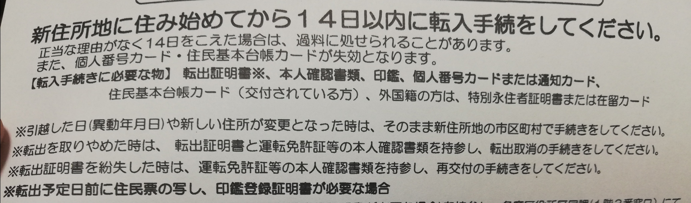 あと、役所の手続きって転出届けのことなんですけど、今日家のポスト見たらなぜか入ってました。