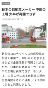 後半は新型コロナウイルスによる、中国の工場にある日本の自動車メーカー等の話題になります。
