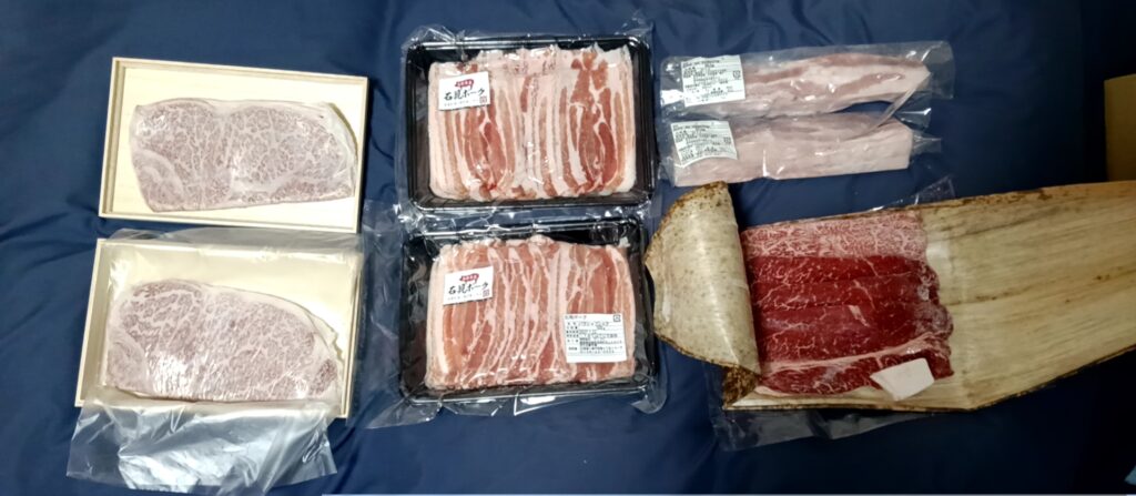 今日は休みで2月9日肉の日だったのでいつもスーパーの国産安肉を食べていますが奮発して高級牛豚肉をアマゾンで購入して届いたのはいいですが、