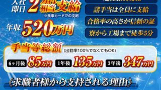 ブログ 【年収520万?!】三菱自動車期間圧倒的募集中!伊勢神宮で総理に遭遇?! 今だけ増額!!半年で手当総額85万円支給!!(入社当日に2万円相当!)満了慰労金総額300万円支給!生活費ほぼ不要★寮費無料(水道・光熱費こみ!食費無料!)★三菱自動車岡崎製作所★正社員登用あり!!【愛知県岡崎市】求人情報業種車・バイク・重... 2022.01.04 ブログ
