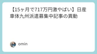 【15ヶ月で717万円激やばい】日産車体九州派遣募集中記事の異動